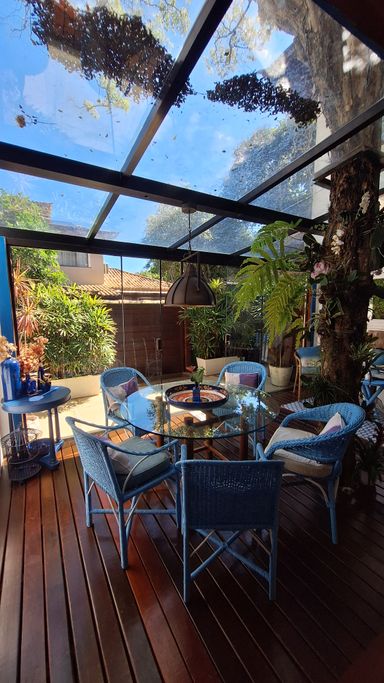 • Lounge interno para refeições com teto de vidro, integrado à área externa