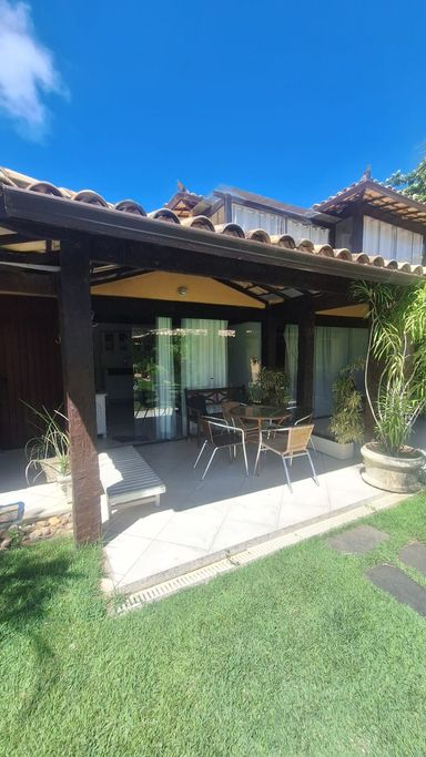 A casa é completa , totalmente equipada e lindamente decorada. São 4 suítes com cama de casal , todas com ar condicionado, ventilador de teto e armários . Em uma das suítes tem Tv. A sala é dividida em 2 ambientes , sala de estar com tv e sala de jantar , integrada a cozinha americana, que está equipada com todos os utensílios e eletrodomésticos. Tem também uma área gourmet muito charmosa com churrasqueira e todo o suporte para reunir a família ou os amigos para um churrasco. No segundo andar, além das suites tem um mezanino com ar portátil e na frente da casa, uma agradável varanda que dá para um lindo jardim . O condomínio tem 2 piscinas , adulto e infantil , sauna, área gourmet, salão de jogos e estacionamento.