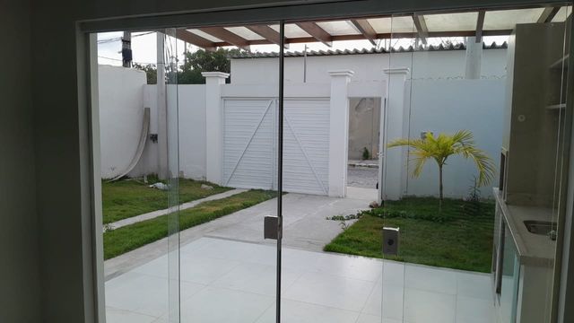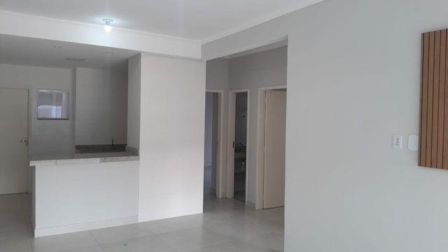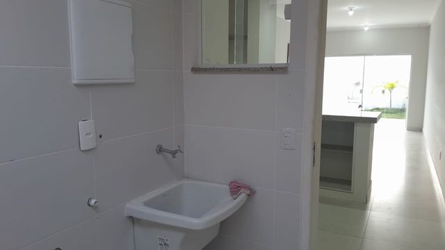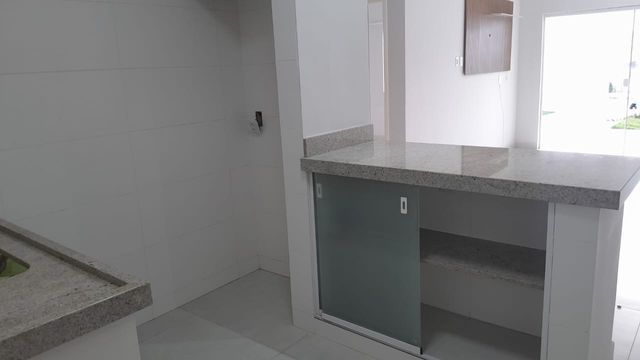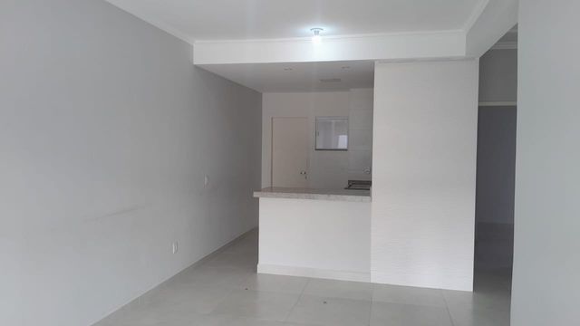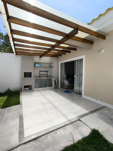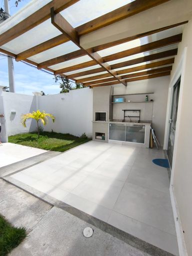 3 quartos (sendo 1 suíte), 1 banheiro social, Sala e cozinha integradas, Área com churrasqueira, Garagem para moto